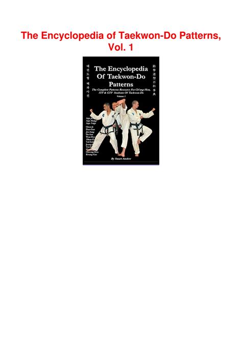 Read the encyclopedia of taekwon do patterns vol 1 PDF online is a convenient and frugal way to read the encyclopedia of taekwon do patterns vol 1 you love right from the comfort of your own home. Yes, there sites where you can get PDF "for free" but the ones listed below are clean from viruses and completely legal to use.