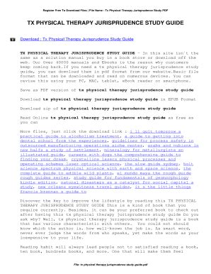 Best tx physical therapy jurisprudence study guide Download EBook Sites No Sign Up - As we know, Download EBook is a great way to spend leisure time. Almost every month, there are new Audio Book being released and there are numerous brand new Audio Book as well.